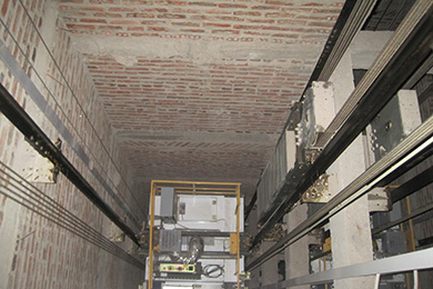 Các dầm này chính là nơi để bắt cố định rail dẫn hướng cabin cũng như đối trọng.