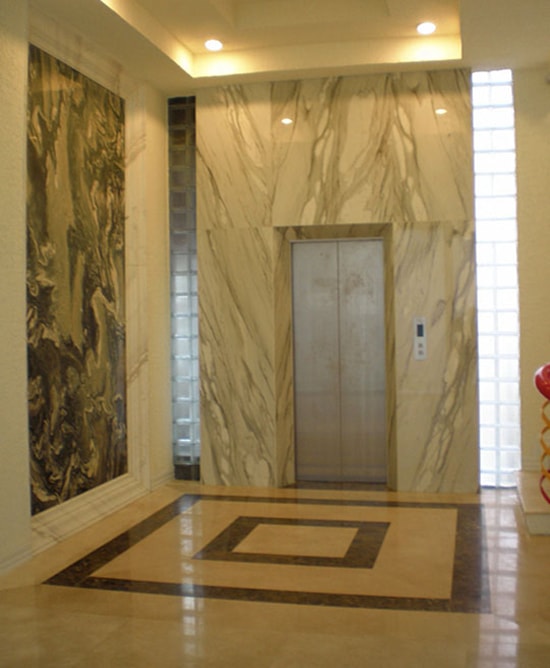 Cửa tầng thang máy sử dụng khung bao bản hẹp NF là loại khung bao có kích thước chỉ dao động từ 5cm đến 7cm. Vì thế nếu tường xây dày 20cm thì sau khi lắp xong phần cơ khí của thang thì chủ nhà sẽ tiến hành ốp đá trang trí phần cửa còn lại.