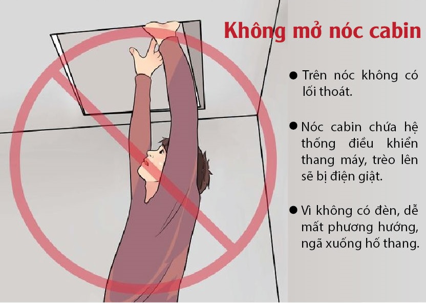 Khi bị kẹt trong thang máy, không nên tự ý cạy cửa thang máy vì ngay cả khi cạy được thì việc di chuyển ra ngoài cũng tiềm ẩn rất nhiều nguy hiểm