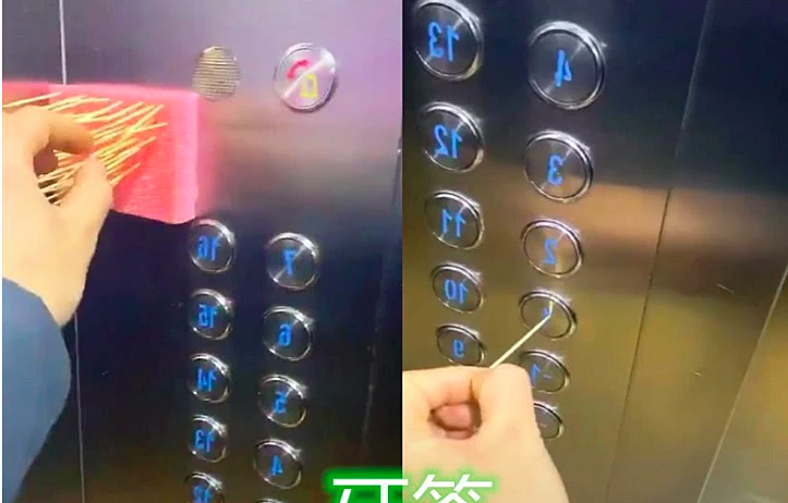 Để ngăn ngừa lây nhiễm chéo, một số thang máy Trung Quốc đã cung cấp tăm cho người dân ấn thang và vứt bỏ sau khi dùng. Tuy nhiên, theo Tân Phát, nếu trong thang có người bị nhiễm corona hắt hơi, hoặc anh ta chạm vào vài chiếc tăm trong khi lấy thì sẽ có những giọt bắn nhỏ trên tăm. Khi bạn dùng tăm để ấn thang mà không rửa tay thì vẫn bị lây nhiễm virus.