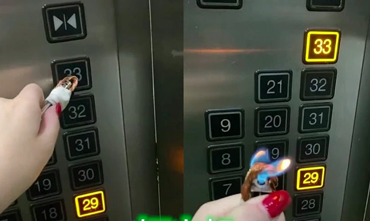 Một cách khác là dùng bật lửa. Có người còn chế một dây thép trên bật lửa, khi ấn thang xong thì trực tiếp đốt bộ phận trên bật lửa vừa tiếp xúc với thang máy.