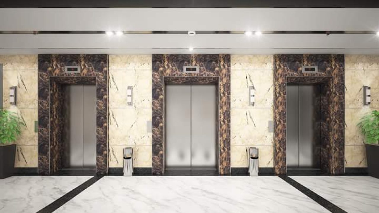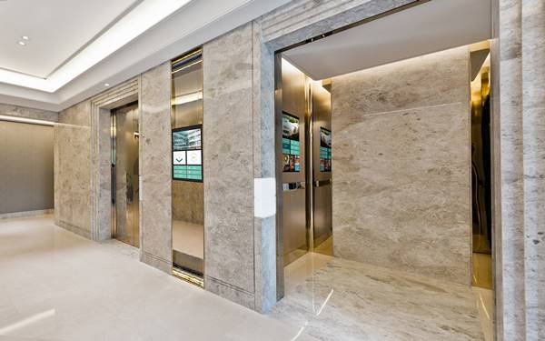 Phần ốp đá bên ngoài cửa thang máy ở mỗi tầng tại các điểm dừng thang máy, khi đó tùy thuộc vào hình thức cabin đã chọn ở phần trên mà chủ đầu tư và đơn vị cung cấp sẽ lựa chọn sao cho phù hợp với hình thức cabin đã chọn phù hợp với tông màu, phong thủy cũng như nội thất thiết kế của khách sạn đó.