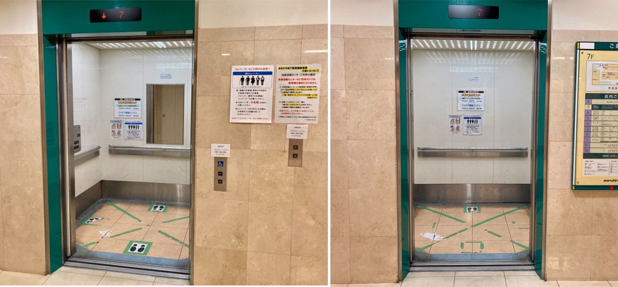 Và chiếc thang máy bên trái có gương, trong khi cái bên phải thì không.