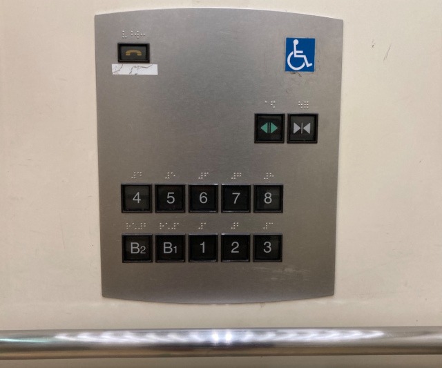 Bảng bấm thang máy ở Nhật, có chữ nổi cho người khiếm thị.