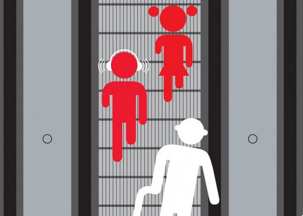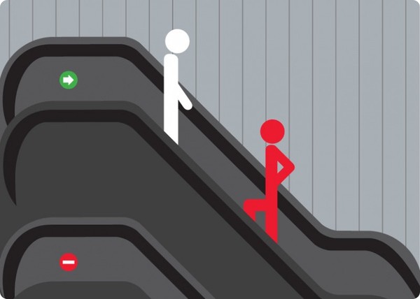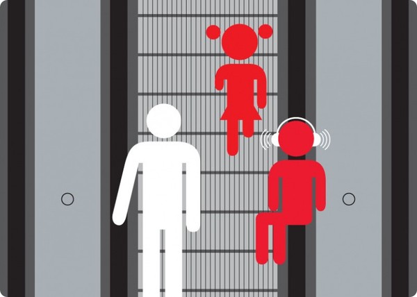 Không được phép chạy, trêu đùa nhau hay ngồi trên thành tay vịn của thang cuốn. Lưu ý đứng phía tay phải của thang để đảm bảo không cản trở hành khách khác đi thang