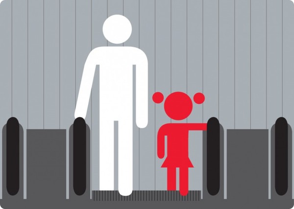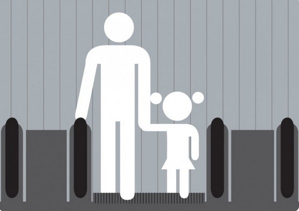 Người lớn nên cầm tay và đặt trẻ em đứng vào khoảng giữa của bậc thang cuốn. Trẻ em dưới 6 tuổi tốt nhất nên được bế để đảm bảo an toàn